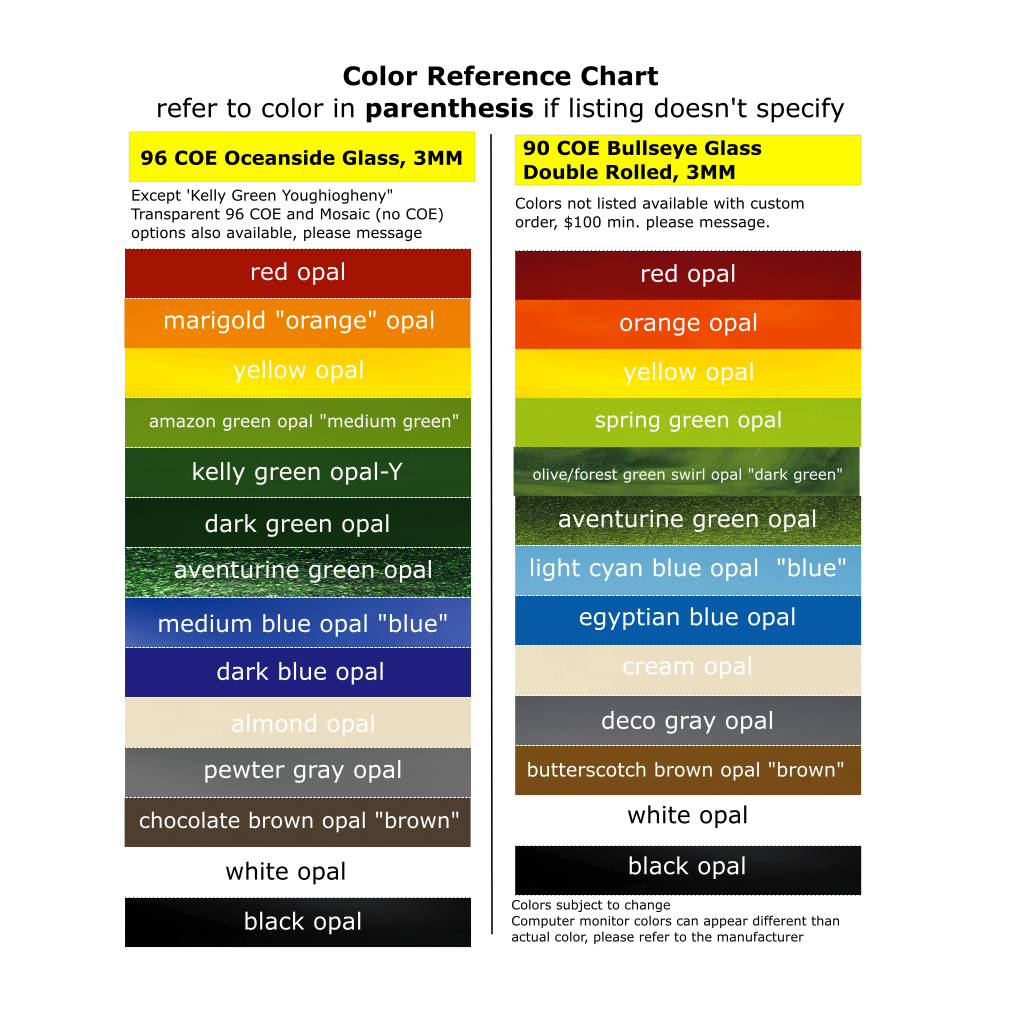 96 COE- Oceanside Opal red, Aventurine green, Dark Green or Amazon green